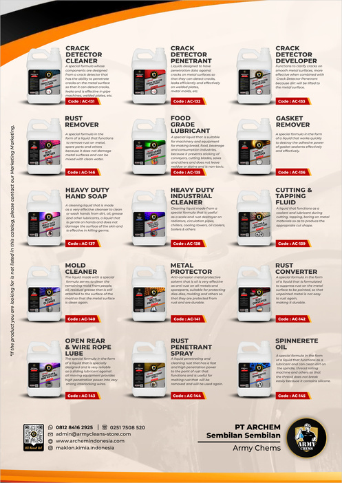 Merawat mesin & peralatan produksi hanya dengan menggunakan cairan kimia yang tepat guna, akan memperpanjang usia mesin, menurunkan down time, meningkatkan efisiensi proses produksi, serta menurunkan biaya operasional.